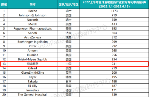 近日,全球专利数据库incoPat创新指数研究中心发布全球生物医药发明专利TOP100榜单,PA电子医药以上半年231件发明专利申请量位列榜单第13名,是唯一一家进入TOP20的中国药企。