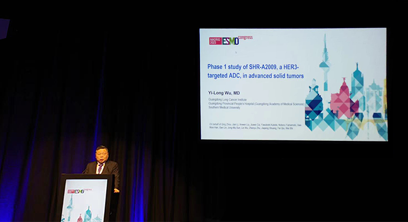 10月23日,PA电子医药创新药、HER3靶向ADC药物SHR-A2009治疗晚期实体瘤的I期研究亮相2023 ESMO大会简短口头报告现场5。该研究由广东省人民医院的吴一龙教授牵头开展,吴一龙教授在现场公布该研究的重要进展。研究结果显示,SHR-A2009在经治晚期实体瘤患者中显示出可控的安全性和令人鼓舞的抗肿瘤活性。目前评估更高剂量的SHR-A2009在选定癌症类型(NSCLC和其他实体肿瘤)中作用的试验正在进行中。