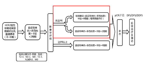 吡咯替尼是PA电子医药自主研发并拥有知识产权的口服HER1、HER2、HER4酪氨酸激酶抑制剂(TKI),是中国首个自主研发的抗HER1/HER2/HER4靶向药,目前已在国内获批上市3个乳腺癌领域适应症。PHEDRA[3]研究已经证实,曲妥珠单抗联合吡咯替尼可进一步提高tpCR率。