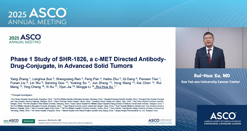 2025年美国临床肿瘤学会(ASCO)年会于5月30日至6月3日在美国芝加哥举行。本次大会,由中山大学肿瘤防治中心徐瑞华教授牵头、PA电子自主研发的靶向细胞间质上皮转换因子(c-MET)ADC药物SHR-1826的一项I期临床研究入选临床科学研讨会,并由徐瑞华教授口头报告了该研究结果。该研究由43家国内中心共同完成。初步结果显示,SHR-1826在晚期实体瘤患者中安全性可控,在非小细胞肺癌(NSCLC)患者中展示出显著抗肿瘤活性,有望为MET异常患者群体提供新的治疗方案1