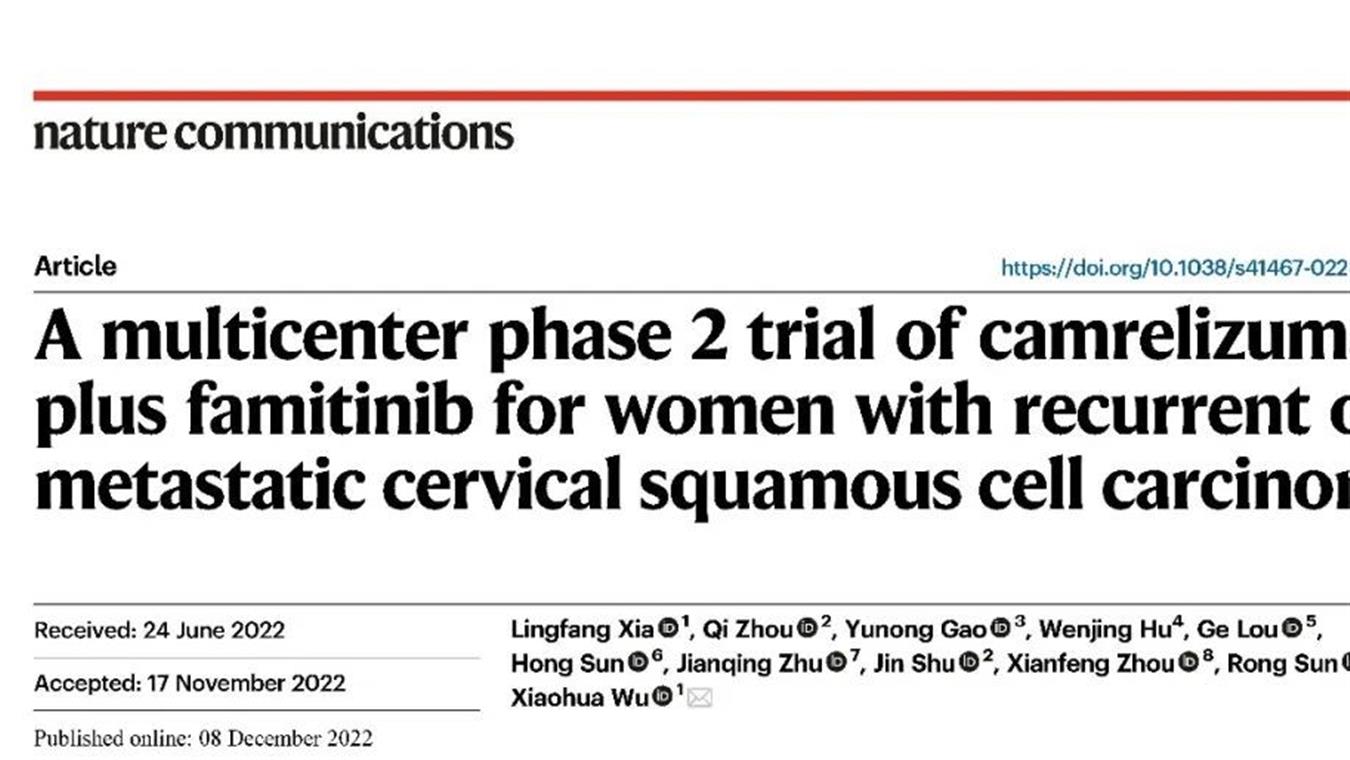 PA电子创新药卡瑞利珠单抗联合法米替尼用于复发或转移性宫颈癌研究结果荣登JCO
